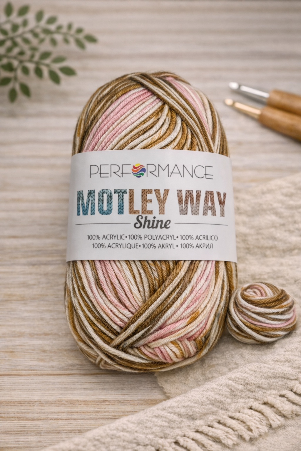Motley Way 100% akrüüllõng. 100 g ehk ca 160 m lõnga. Vardad/heegelnõel nr 4,0-5,0