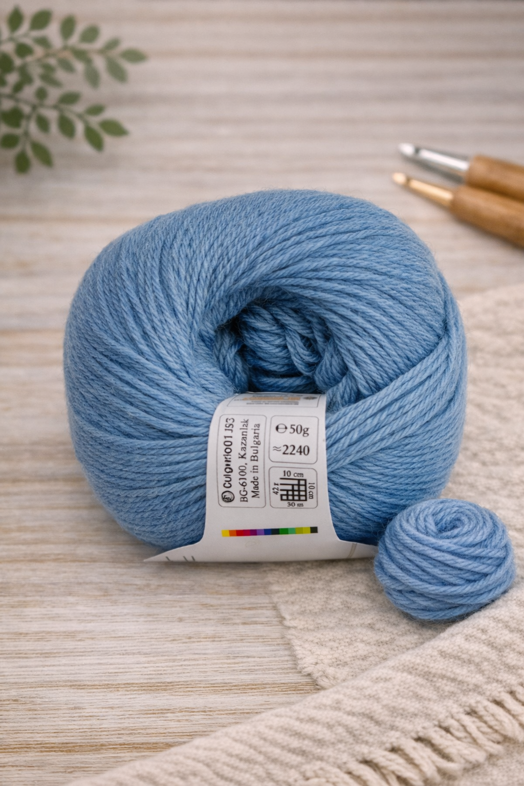Sokilõng Cool Wool, koostises 75% vill ja 25% polüamiid. 50 g ehk ca 200 m lõnga. Vardad/heegelnõel 2,0-3,0