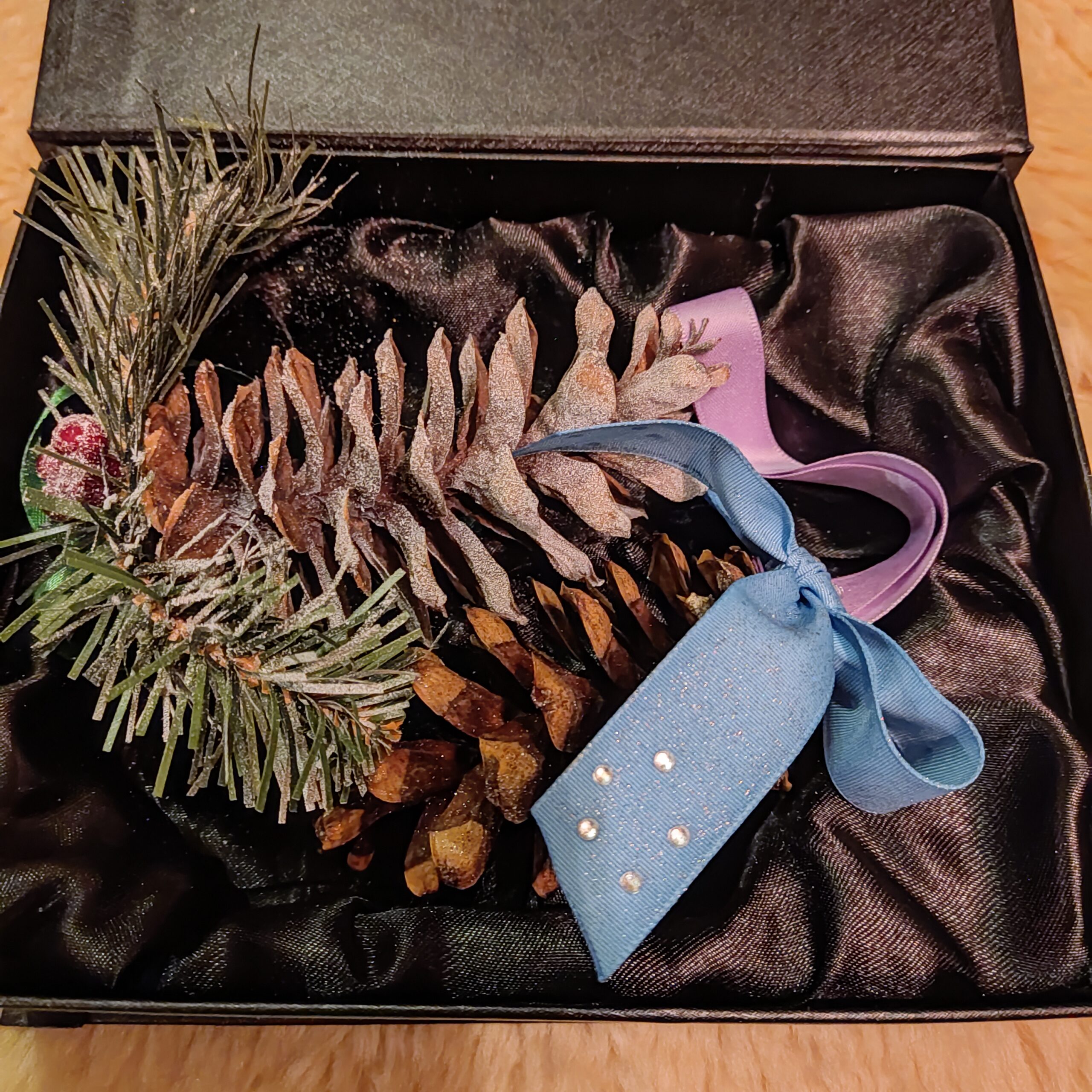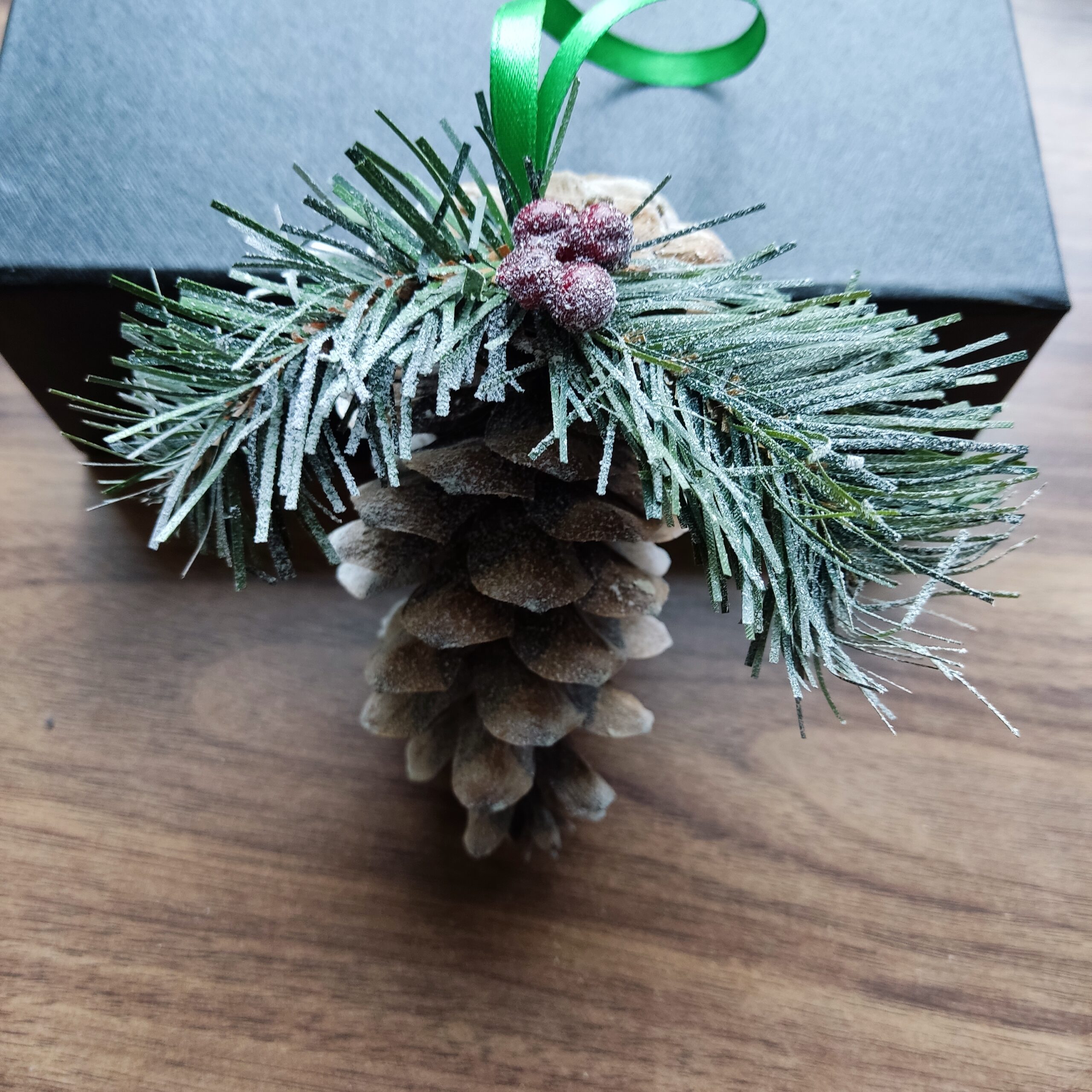 Kaunis kinkekarbis 2 jõuluehet. Käbidest käsitööna valminud.