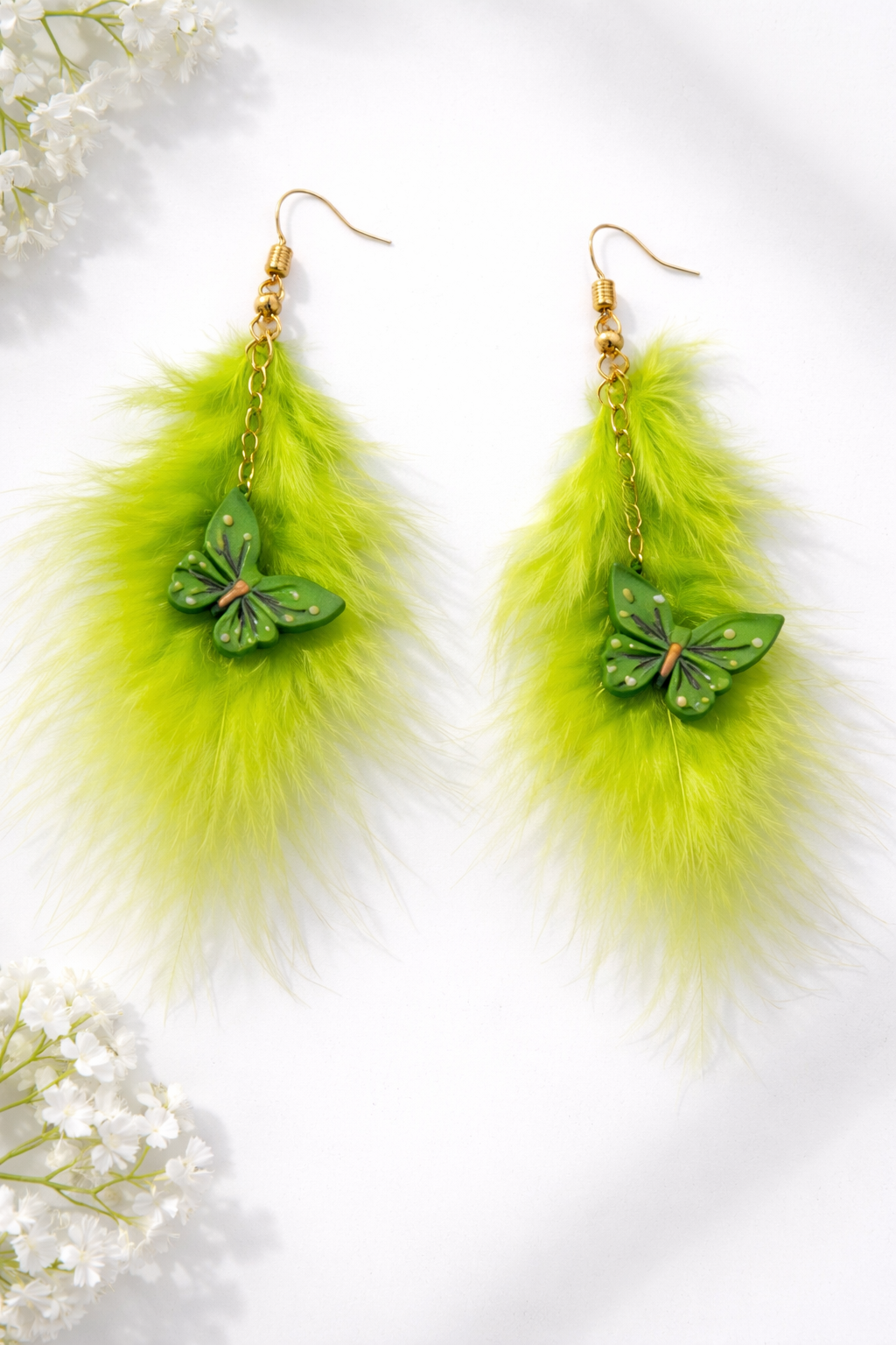 Looduslähedase ja õrna ilmega käsitööna valminud kõrvarõngad toovad esile su kevadise värskuse ja vabaduse. Need unikaalsed ehted koosnevad kuldsetest kõrvarõnga konksudest, kergest puidust liblikast ja pehmetest helerohelistest sulgedest, mis lisavad igale liigutusele lendleva elegantsi. Sobivad suurepäraselt nii igapäevaseks kandmiseks kui ka erilisteks sündmusteks, kus soovid särada.