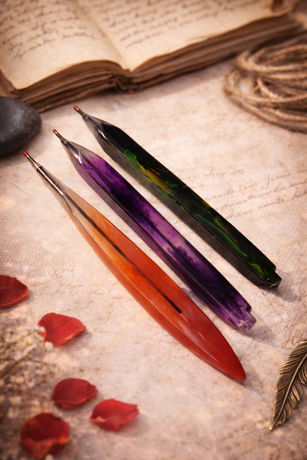 Epoksiidvaigust valmistatud kolm musta pastapliiatsit.