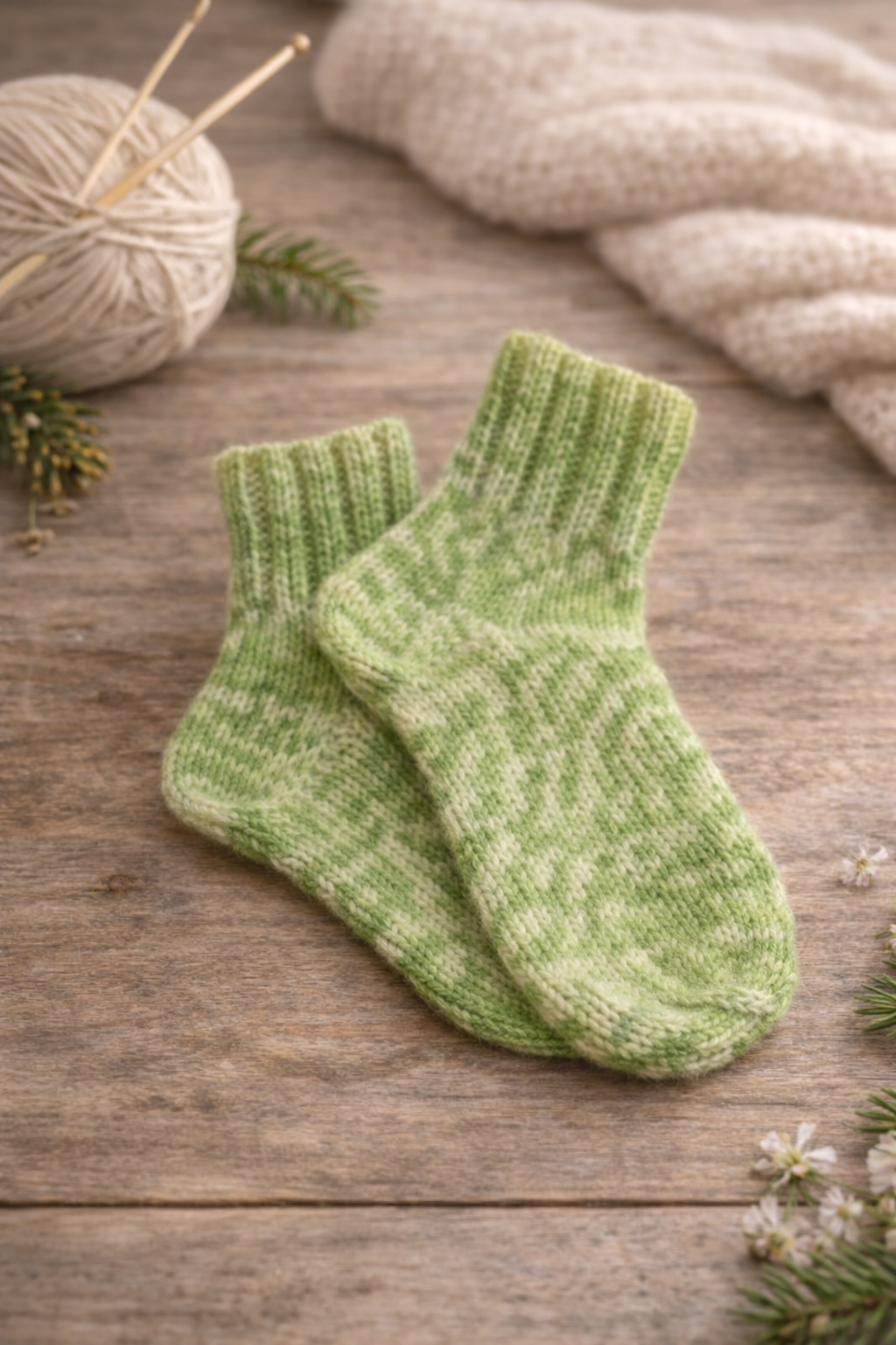 Koostis 75% vill ja 25% polüamiid. Suurus 19-20