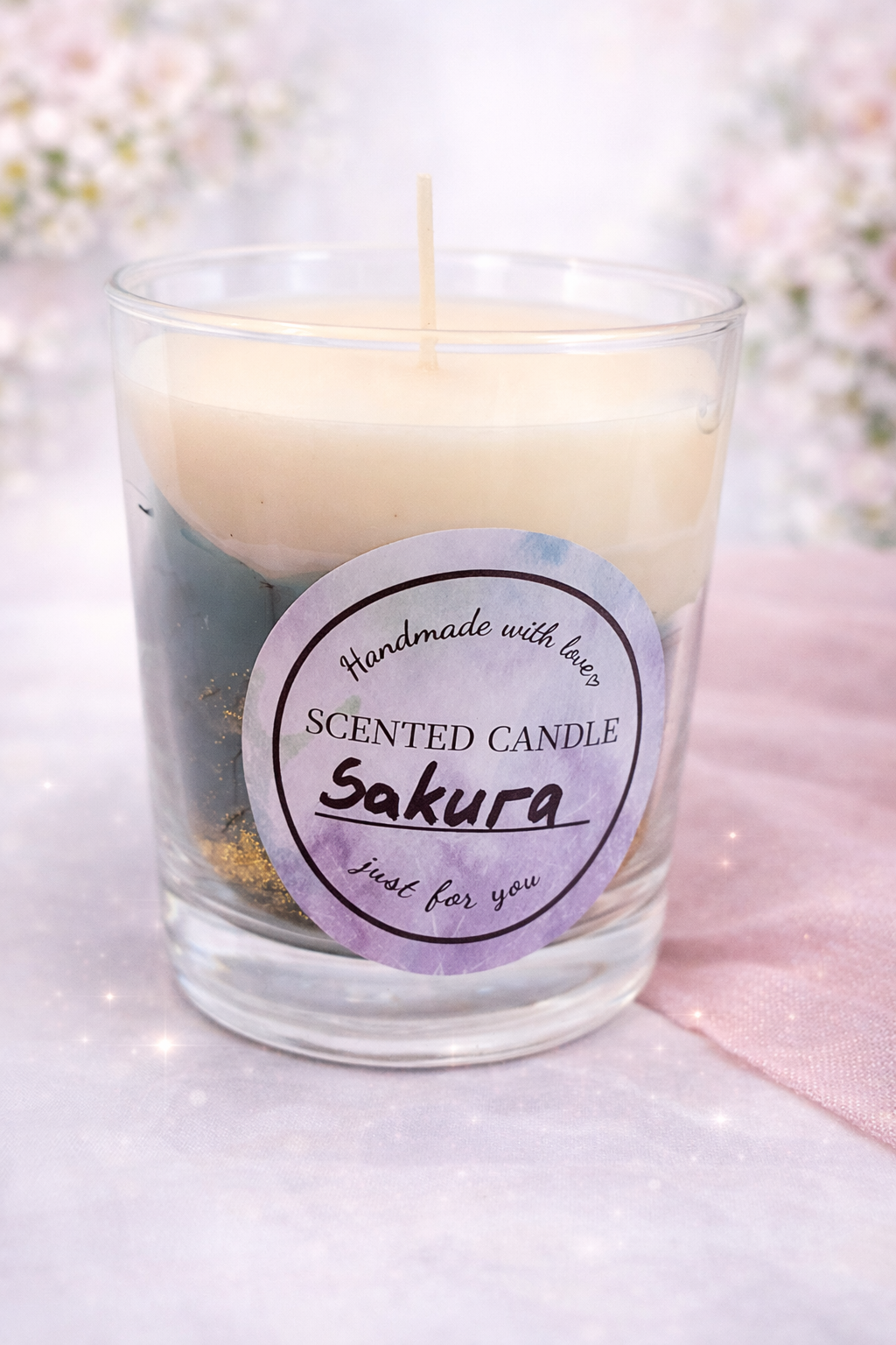 Sojavahast sakura aroomiga küünal. Klaasi kõrgus 9cm ja diameeter pealt 7cm