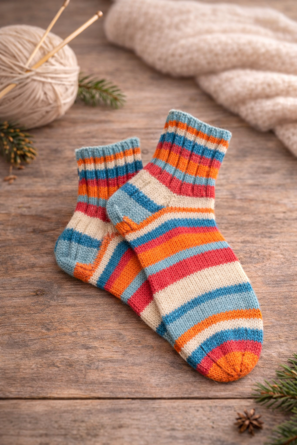 Sokid suurusele 35-36. Kootud nr 3 varrastega. Lõng 7Veljestä MULTIRAITA (koostis 75% vill ja 25% polüamiid)